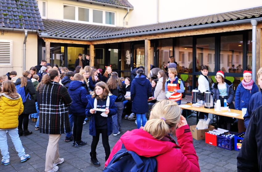 Im Rahmen der Weihnachtsandacht 2022 überreichten Leon Kunkel, Marie Gunzert, Mara Hoffmann und Moritz Unger von der Schüler*innen-Vertretung (SV) zwei Schecks, mit denen die diesjährigen Spenden ...