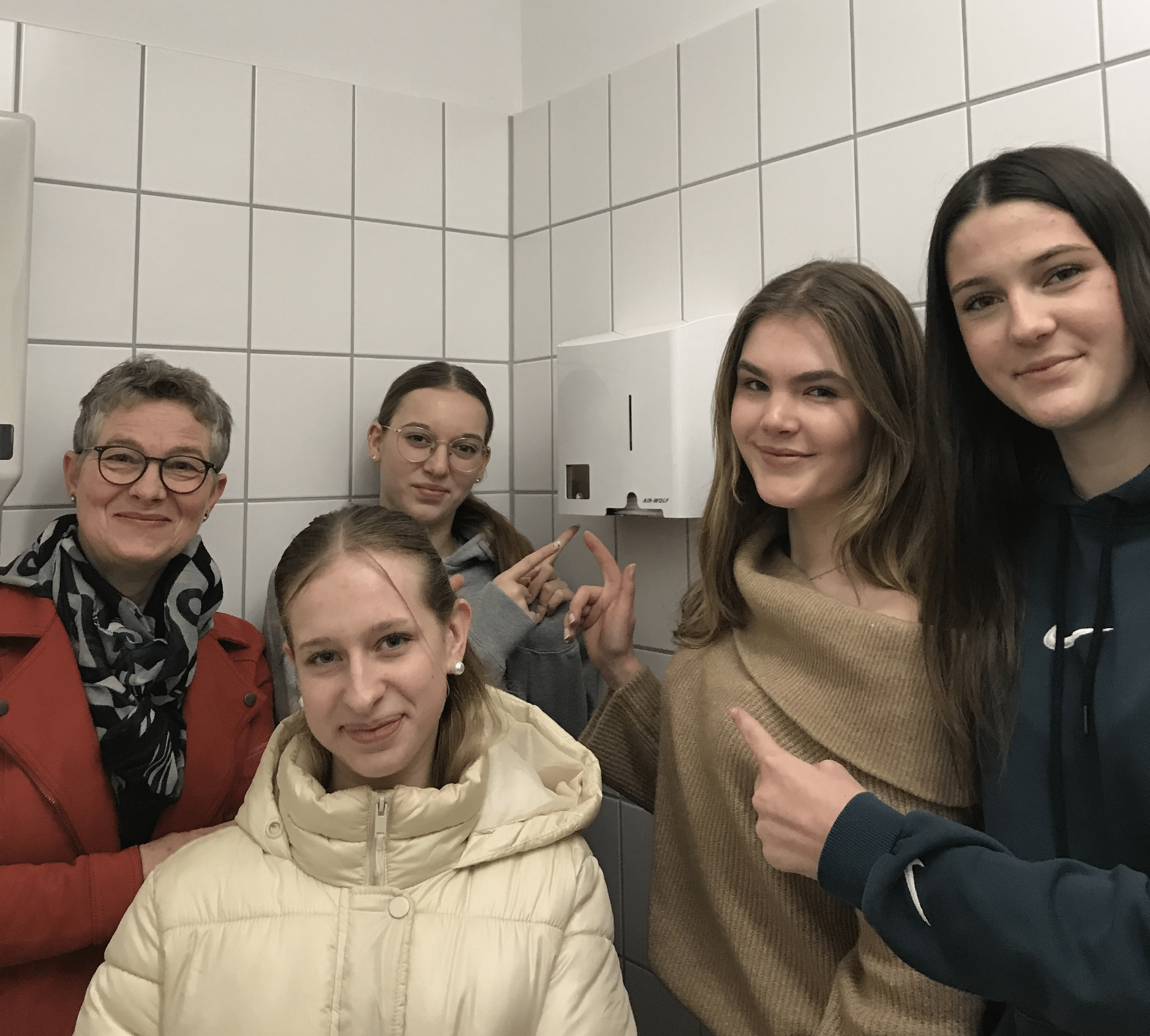 Seit ein paar Tagen hängt im Mädchen-WC (Kursgebäude) ein Hygieneautomat. Dort kann man ab jetzt umsonst Hygieneprodukte für den Notfall ziehen.