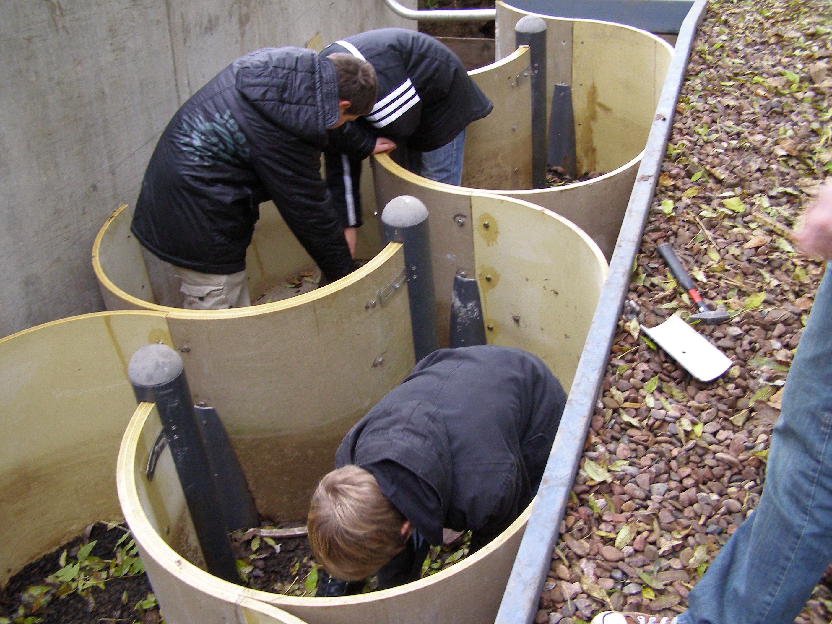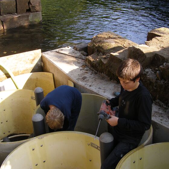 Querbauwerke und Sohlabstürze verhindern insgesamt die ökologische Durchgängigkeit. Bereits Abstürze von nur 10cm Höhe lassen Wanderungen von bodengebundenen Kleinfischen und Vertretern der Makrobenthosfauna wie z.B.: Eintagsfliegenlarven, Köcherfliegenlarve oder Bachnapfschnecke nicht mehr zu. Durch den Bau eines Mäander-Fischpasses, der eine relativ geringe Größe umfasst und gut auf dem Schulgelände gebaut werden konnte, werden diese biologisch wichtigen Wanderungen wieder ermöglicht. Da historische Aufzeichnungen ein Lachsvorkommen bis Dassel vorweisen, wurde der Innendurchmesser der einzelnen Mäander- Schalen der Größe des Lachses angepasst. Dieser wurde bei bisherigen Kontrollen jedoch noch nicht gesichtet, dafür aber Bachforellen, amerikanischer Flusskrebs und Mühlgroppe.