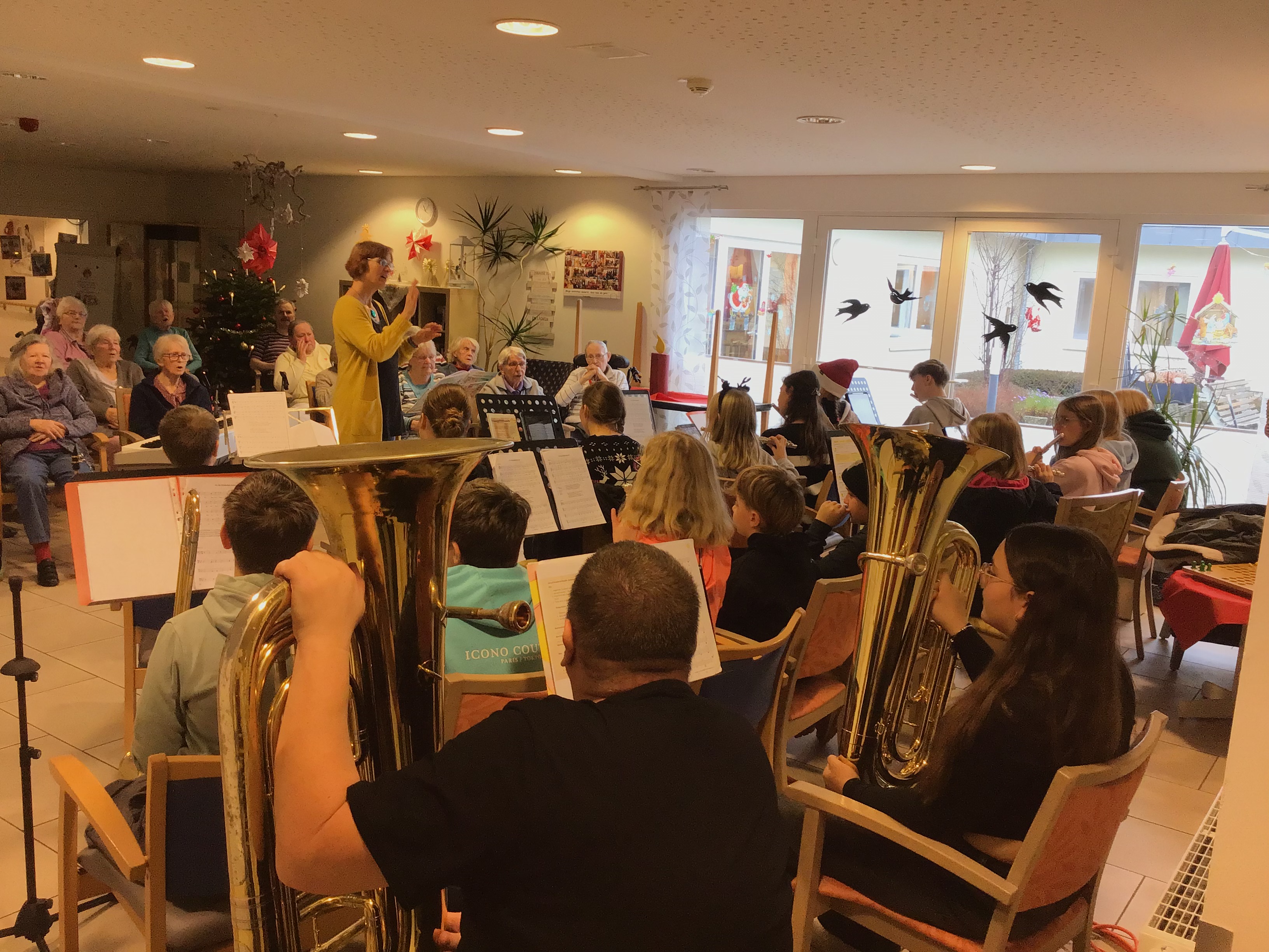 Während der letzten Strophe des Liedes “Oh du fröhliche”, hörte man nochmals alle beteiligten Instrumente im vollen Klang. Und so endete diese gelungen Veranstaltung mit Applaus. Die Mitarbeiterinnen aus dem Betreuungsbereich luden die jungen Musikerinnen und Musiker erneut ein, zu einem späteren Zeitpunkt wieder ein Konzert zu geben: “Sie haben unseren Alltag zum Klingen gebracht!”