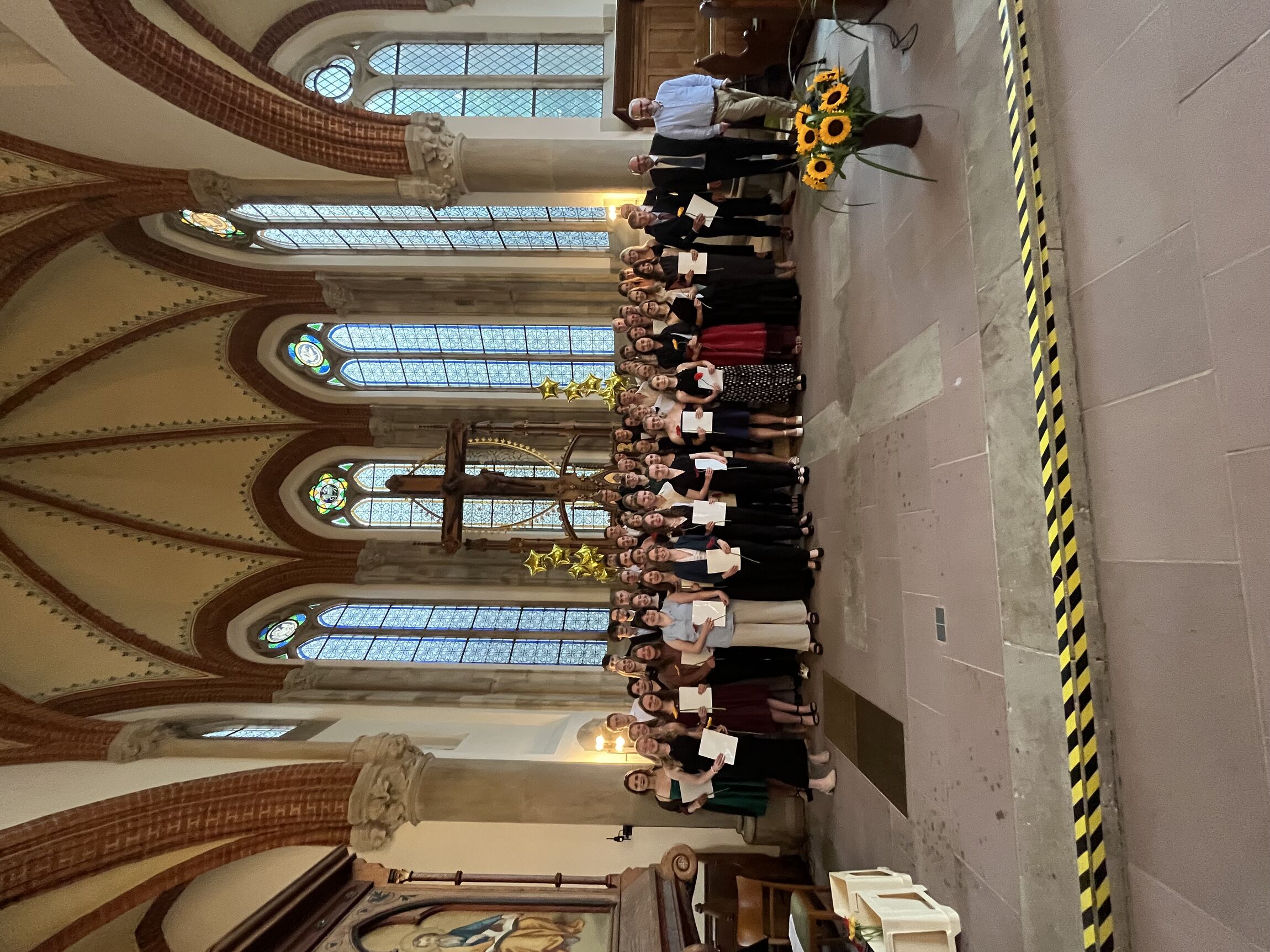 Das Motto des Jahrgangs war nicht nur symbolisch, sondern zog sich wie ein roter Faden durch die Gestaltung des gesamten Nachmittags. Gemeinsam mit Pastor Christian Coenen hatte eine Gruppe Abiturientinnen und Abiturienten einen eindrucksvollen Gottesdienst vorbereitet, der ermutigte, die eigenen Träume ernst zu nehmen, ihnen nachzueifern und Gottvertrauen als Begleiter auf neuen Wegen zu begreifen.