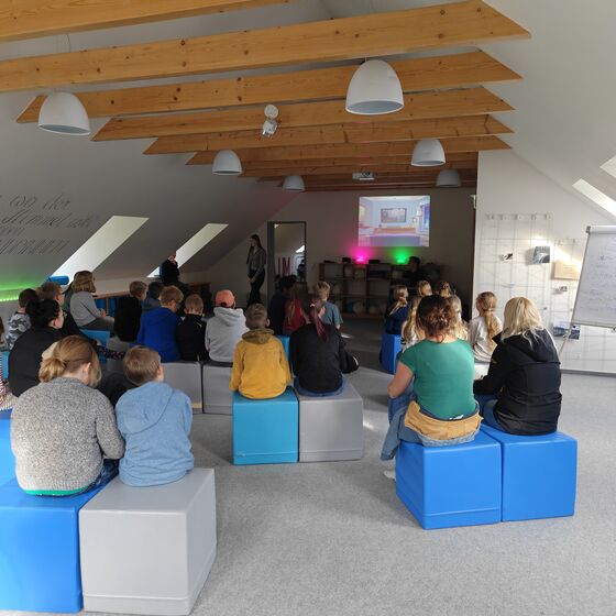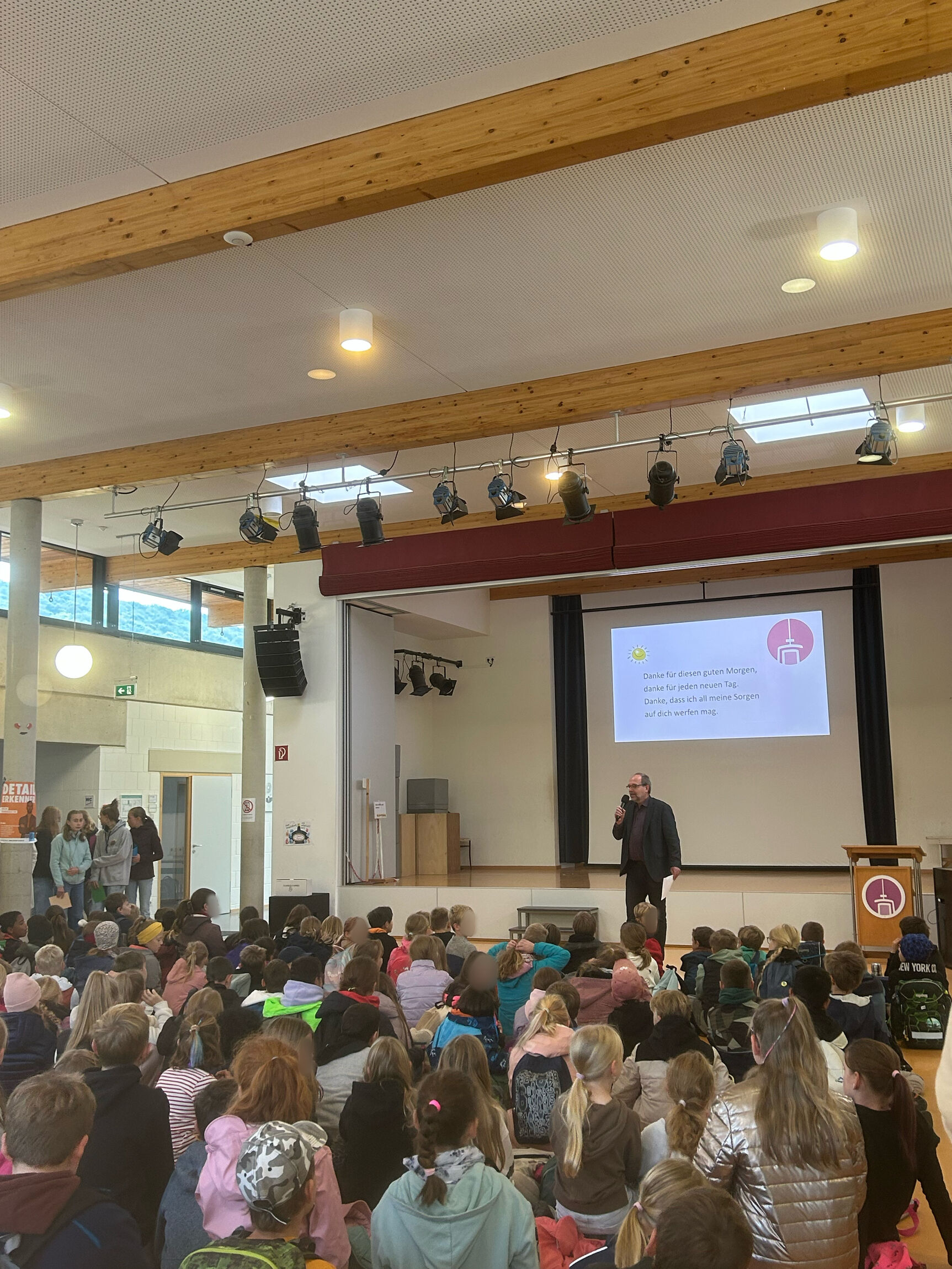 Nach einer gemeinsamen Begrüßung und einer stimmungsvollen Andacht startete für die Kinder ein abwechslungsreiches Programm mit vielen kreativen und interaktiven Mitmach-Stationen. Großer Andrang herrschte an der Apfelsaftstation, wo die Kinder Äpfel pressten und den frisch gewonnenen Saft anschließend verkosten durften. Auch die tierischen Bewohner der Schule sorgten für leuchtende Augen: Die Schulschafe durften gestreichelt werden, und viele Kinder nutzten die Gelegenheit, den Tieren ganz nah zu kommen und Fragen zur Haltung zu stellen. Im Schulgarten konnten die Schüler*innen Futterknödel für Vögel herstellen – eine Station, die nicht nur Spaß machte, sondern auch ein Bewusstsein für Natur- und Tierschutz förderte. Beim Basteln entstanden kleine herbstliche Kunstwerke, während an einer anderen Station Marshmallows über dem Feuer geröstet wurden – ein echtes Highlight für viele. Wer sich sportlich betätigen wollte, konnte sich bei kleinen Sportspielen austoben. Auch die Imkerei-Station stieß auf großes Interesse. Dort erfuhren die Kinder Spannendes über die Bedeutung von Bienen für die Umwelt und die Honigproduktion an der Schule. Moderne Technik durfte ebenfalls nicht fehlen: In einem digitalen Quiz auf iPads traten die Kinder in Teams gegeneinander an und beantworteten Fragen rund um die Schule. Dabei waren Wissen und Schnelligkeit gefragt – und die Stimmung entsprechend ausgelassen.
