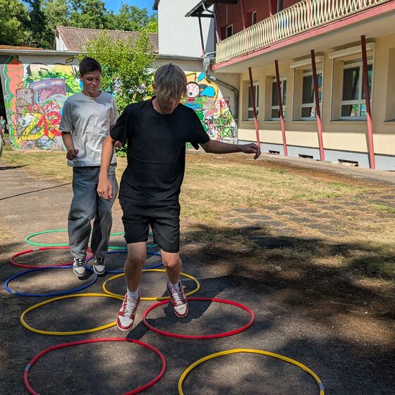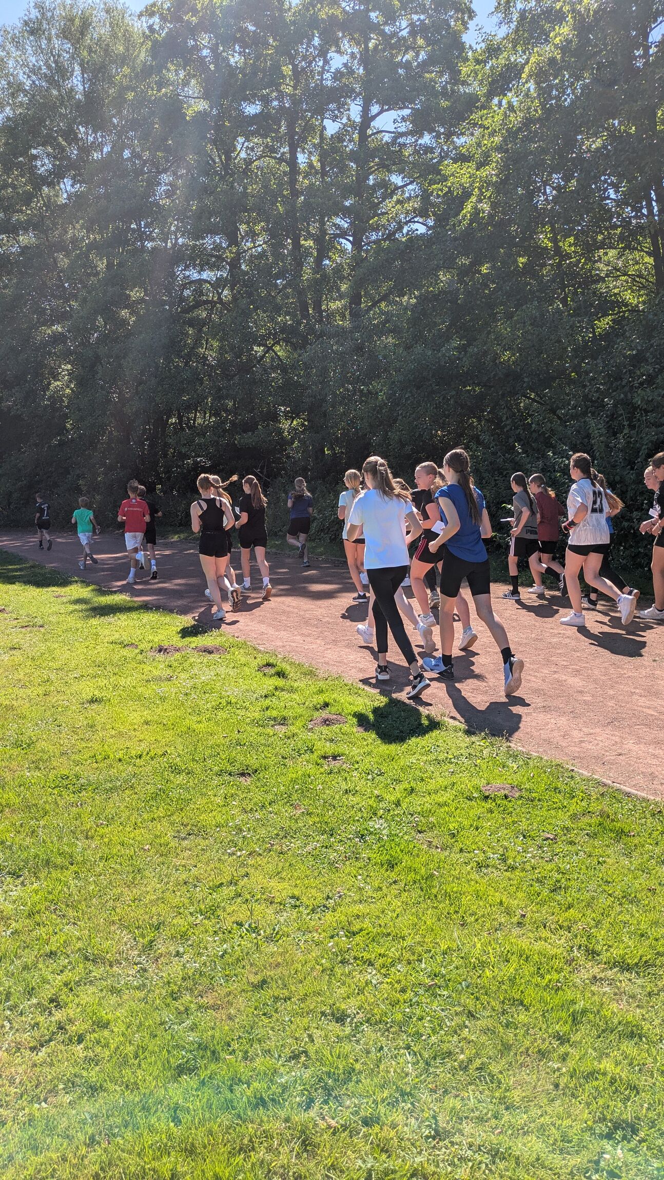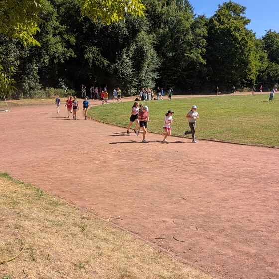 Für die Jahrgänge 5 bis 7 fand ein Spendenlauf auf dem Sportplatz statt, begleitet von Musik. Die Klassen 8 und 9 absolvierten einen Geländelauf über das Schulgelände mit verschiedenen Hindernissen, die von Schülerinnen und Schülern der Jahrgänge 10 und 11 betreut wurden. Aufgrund der hohen Temperaturen wurden die Laufzeiten für die jüngeren Jahrgänge verkürzt und zeitlich vorverlegt. Ein Rasensprenger sorgte dafür, dass sich die Läuferinnen und Läufer zwischendurch abkühlen konnten. Zusätzlich gab es ein Begleitprogramm mit verschiedenen Spielen, die von Schülerinnen und Schülern der Jahrgänge 10 und 11 angeboten wurden. Dabei konnte man Stempel sammeln, die anschließend gegen Süßigkeiten eingetauscht werden konnten. Die Jahrgangsstufe 12 sorgte für das leibliche Wohl. Bratwurst, Pommes, Getränke, Snacks und Eis wurden verkauft. Zum Abschluss des Tages fand eine Siegerehrung statt. Die Klassen mit dem besten Rundendurchschnitt wurden mit einer Eis-Belohnung geehrt.