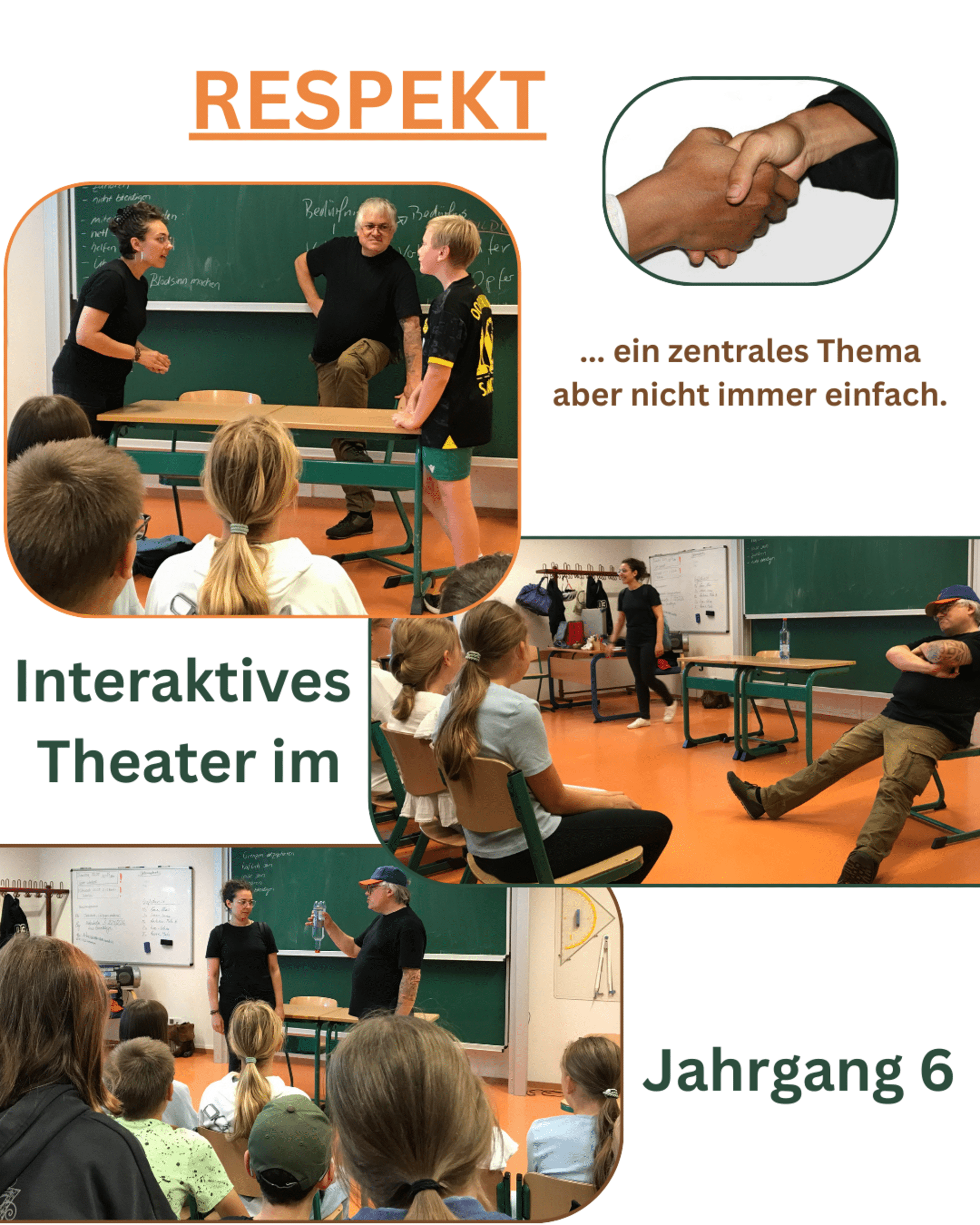 Im interaktiven Theaterstück wurden den Schüler*innen echte Situationen aus Schule, Familie und Freundeskreis dargestellt, um Raum für Austausch darüber zu öffnen, wie ein respektvoller Umgang gelebt werden kann. Anhand dieser Beispiele erarbeiteten die Schüler*innen gemeinsam neue Wege für mehr Fairness, Toleranz und ein respektvolles Miteinander.