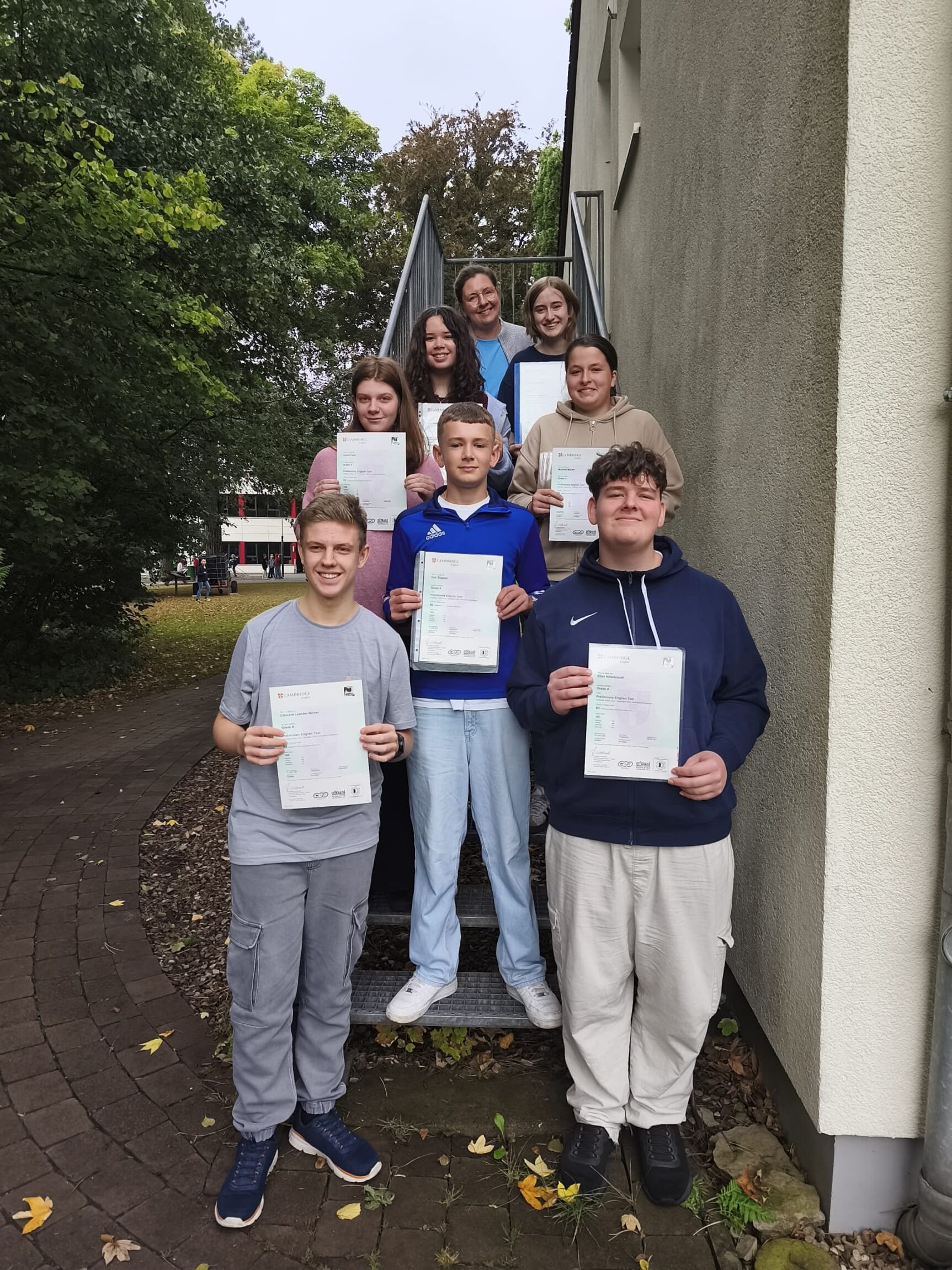 Mitte Juni stellten sich Anna Frank, Elias Hildebrandt, Lovis Kessler, Gloria Konrad, Eosander Kühl, Marlene Marten, Clemens Neiner, Daniela Pereu, Aleksandra Vlasenko, Erik Ziegeler, Friederike Reimnitz und Mira Rittgerodt der Herausforderung, zum Landesverband der Volkshochschulen in Hannover, dem authorised exam centre for Cambridge English, zu fahren und die Prüfung auf B1 Niveau abzulegen.