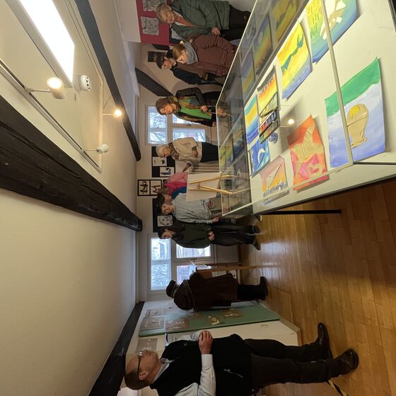 Die Eröffnung übernahm Dr. Imke Weichert, Leiterin des Stadtmuseums Einbeck. In ihrer Rede würdigte sie die Konzentration, Geduld und Kreativität der Schülerinnen und Schüler und zeigte sich beeindruckt von der Qualität der Ergebnisse. Besonders hob sie hervor, wie selbstverständlich die Kinder historische Techniken in eine zeitgemäße Bildsprache überführt haben. Begleitet wurde das Projekt von Kunstlehrerin Birgit Goertz, die das Wahlangebot an der Paul-Gerhardt-Schule ebenfalls leitet. Der Schulleiter Matthias Kleiner war bei der Vernissage anwesend. Er bedankte sich ausdrücklich beim Stadtmuseum Einbeck für die inspirierende und verlässliche Kooperation und betonte den hohen pädagogischen Wert außerschulischer Lernorte. Auch die stellvertretende Schulleiterin Kathrin Muhs-Braun zeigte sich sehr erfreut über eine gelungene außerschulische Kooperation, die neben anderen spannenden Kooperationen das schulische Angebot der PGS bereichert und den Schüler*innen einen erweiterten Blick auf die Welt ermöglicht.